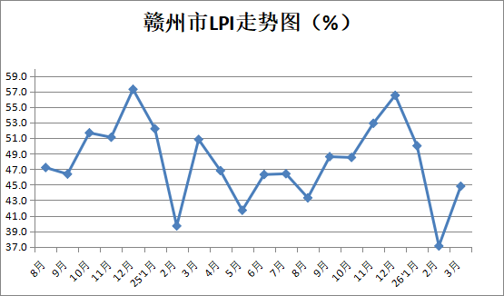 【权威发布】2026年3月赣州市物流业景气指数为44.8%