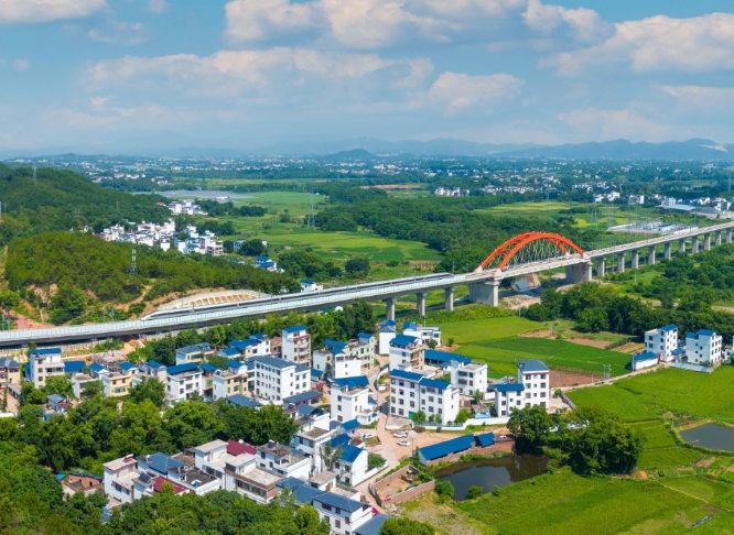 “十四五”期间,江西省内干支线铁路营业里程突破5000公里,高铁营业里程突破2280公里,实现每个设区市通350高铁。基本形成“一核四纵四横”干线铁路网,构建起以省会南昌为中心的铁路快速通达格局。一张交通四通八达、产业新兴强劲、民生幸福笃实的蓝图正成为现实。