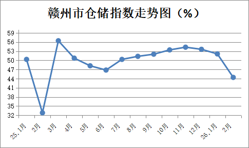 【权威发布】2026年2月赣州市仓储指数为44.4%