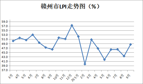 赣州市物流协会发布的2025年9月份赣州市物流业景气指数为48.6%。