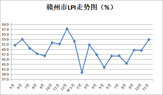 12月份,赣州市物流业景气指数相比较上月上升3.6个百分点,反映出赣州市物流行业市场活跃得益于本地特色产业外向型发展的货物运输需求拉动及春节备货需求与旺季效应的叠加,物流整体市场需求较活跃。