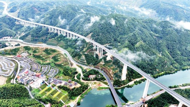 遂大高速宛如一条钢铁巨龙蜿蜒穿梭其间