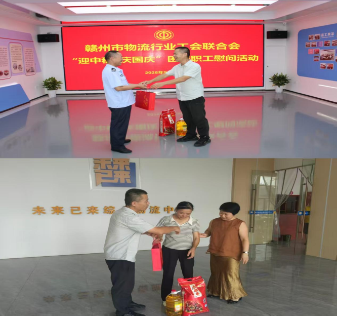 秋高气爽,丹桂飘香。在中秋、国庆“双节”即将到来之际,2025年9月29日,赣州市总工会蹲点组及赣州市物流行业工会联合会工作人员一行,带着浓浓的节日祝福和深深的关爱之情,先后来到未来已来物流园和德征物流园,走访慰问奋战在物流一线的困难职工,为他们送上节日的问候与慰问品。