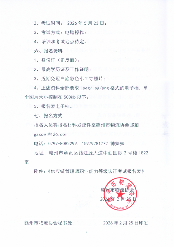 关于2026年春季“供应链管理师 职业能力等级认证”培训考试的通知